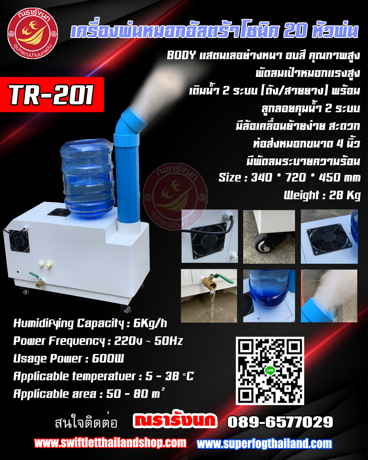 TR201- SUPER ULTRASONIC HUMIDIFIER 20H เครื่องพ่นหมอกอัลตร้าโซนิค 20 หัวพ่น Ultrasonic Humidifier By ณรารังนก 089-6577029